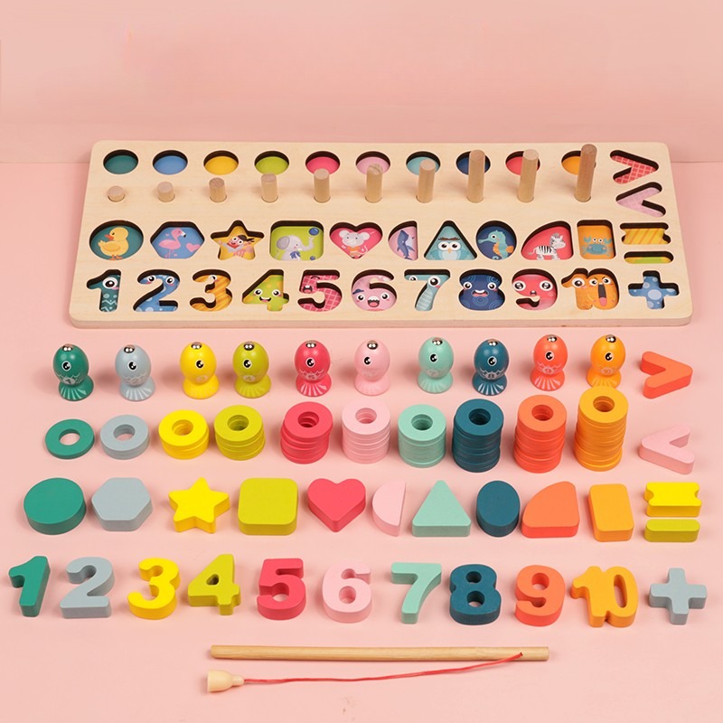 Multi-Activity Learning: Combines number play, shape sorting, and magnetic fishing for variety.