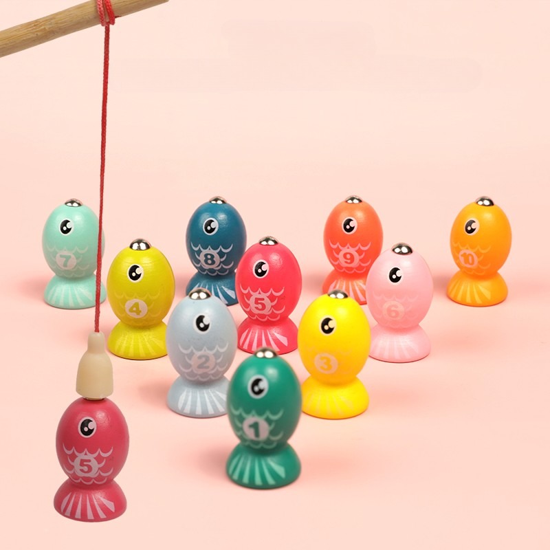 Made from sustainable wood and coated in eco-friendly, water-based paint, this multifunctional set includes numbers 1–9, addition and subtraction symbols, colorful counting rings, and a magnetic fishing game — all in one board.